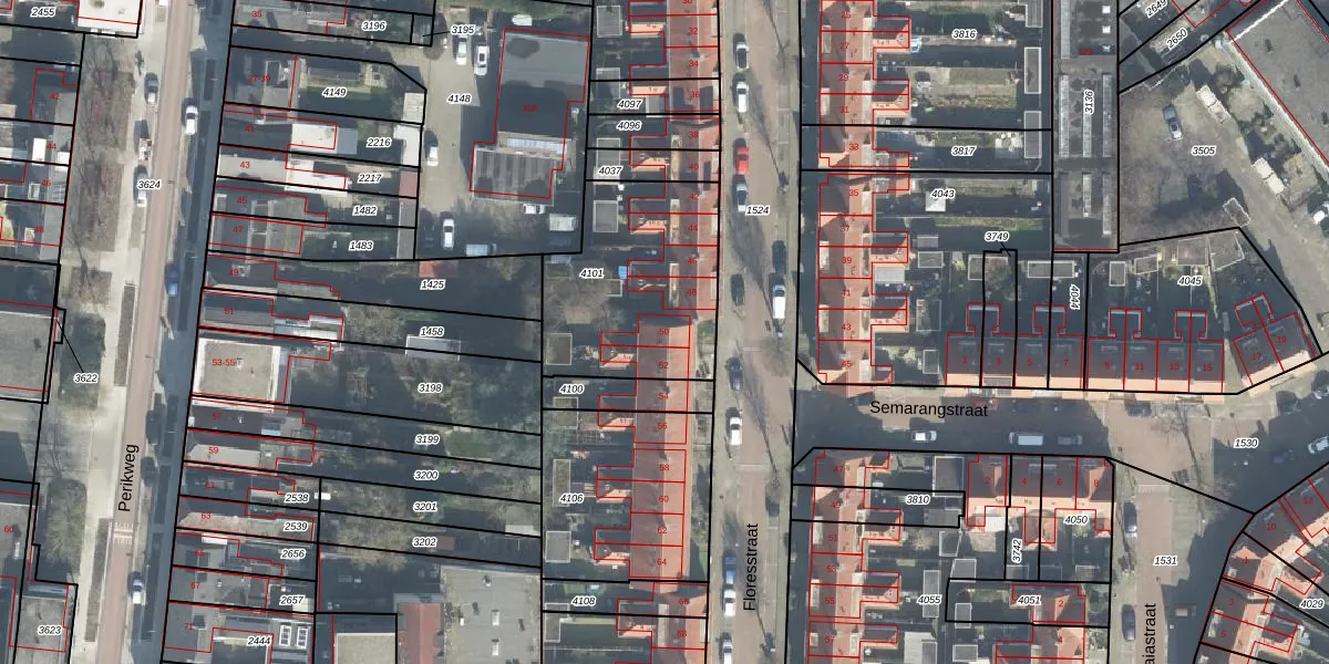 Het perceel waarop Floresstraat 50 staat heeft een oppervlakte van 716 m². Dit is een groot perceel. De perceeloppervlakte wordt geregistreerd door het Kadaster. Gedetailleerde informatie over de maten van dit perceel kunt u vinden in het rapport Kadastrale kaart met maatvoering van Floresstraat 50.