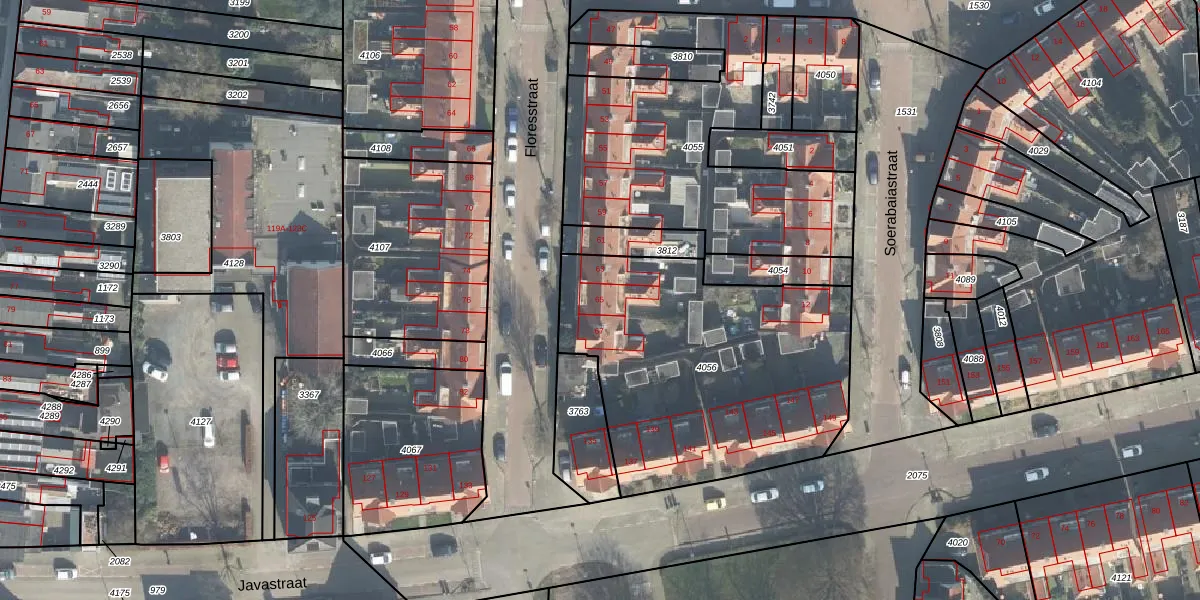 Het perceel waarop Floresstraat 65 staat heeft een oppervlakte van 1480 m². Dit is een zeer groot perceel. De perceeloppervlakte wordt geregistreerd door het Kadaster. Gedetailleerde informatie over de maten van dit perceel kunt u vinden in het rapport Kadastrale kaart met maatvoering van Floresstraat 65.