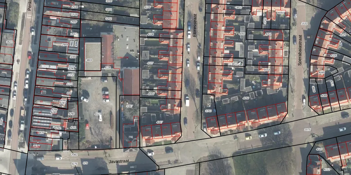 Het perceel waarop Floresstraat 78 staat heeft een oppervlakte van 725 m². Dit is een groot perceel. De perceeloppervlakte wordt geregistreerd door het Kadaster. Gedetailleerde informatie over de maten van dit perceel kunt u vinden in het rapport Kadastrale kaart met maatvoering van Floresstraat 78.