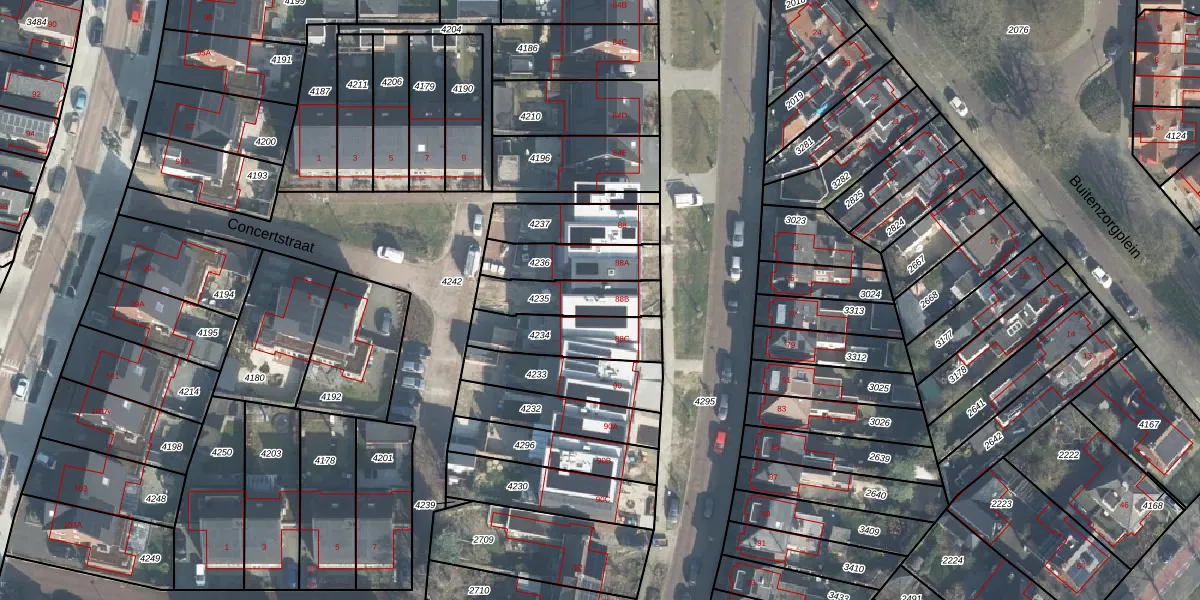 Gebruik de zoekbalk of klik op een perceel voor informatie over de adressen binnen dit perceel.