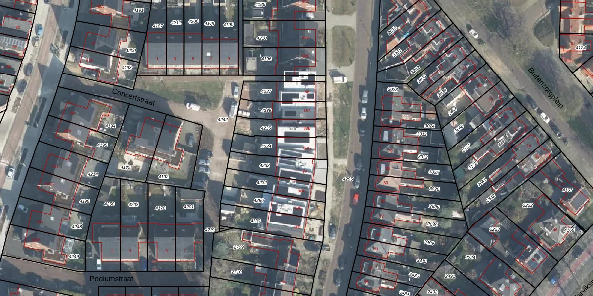 Het perceel waarop Floresstraat 88-C staat heeft een oppervlakte van 220 m². Dit is een middelgroot perceel. De perceeloppervlakte wordt geregistreerd door het Kadaster. Gedetailleerde informatie over de maten van dit perceel kunt u vinden in het rapport Kadastrale kaart met maatvoering van Floresstraat 88-C.