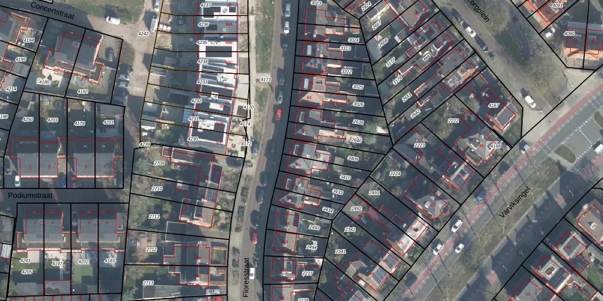 Het perceel waarop Floresstraat 89 staat heeft een oppervlakte van 188 m². Dit is een middelgroot perceel. De perceeloppervlakte wordt geregistreerd door het Kadaster. Gedetailleerde informatie over de maten van dit perceel kunt u vinden in het rapport Kadastrale kaart met maatvoering van Floresstraat 89.