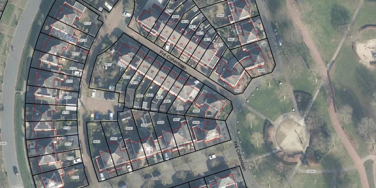 Fré Cohenlaan 27 is gelegen op kadastraal perceel LNK00N9684. Deze kadastrale aanduiding is uniek en wordt gebruikt door het Kadaster om eigendomsrechten en andere zakelijke rechten vast te leggen. Het perceel maakt onderdeel uit van de kadastrale gemeente Lonneker.