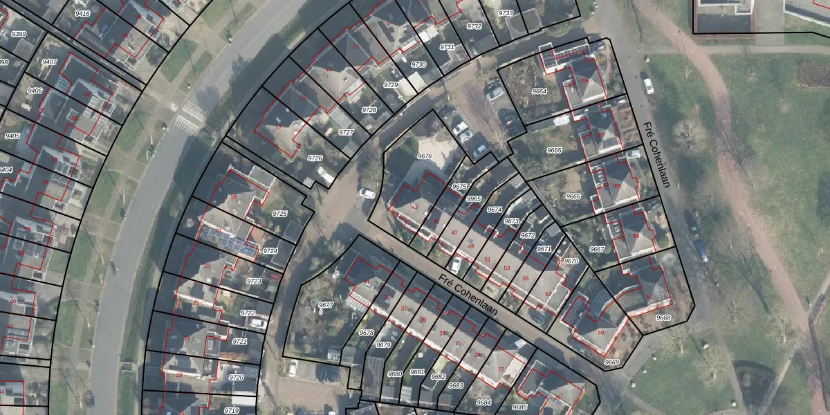 Het perceel waarop Fré Cohenlaan 43 staat heeft een oppervlakte van 409 m². Dit is een groot perceel. De perceeloppervlakte wordt geregistreerd door het Kadaster. Gedetailleerde informatie over de maten van dit perceel kunt u vinden in het rapport Kadastrale kaart met maatvoering van Fré Cohenlaan 43.