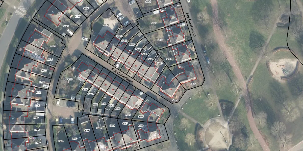 Het perceel waarop Fré Cohenlaan 57 staat heeft een oppervlakte van 184 m². Dit is een middelgroot perceel. De perceeloppervlakte wordt geregistreerd door het Kadaster. Gedetailleerde informatie over de maten van dit perceel kunt u vinden in het rapport Kadastrale kaart met maatvoering van Fré Cohenlaan 57.