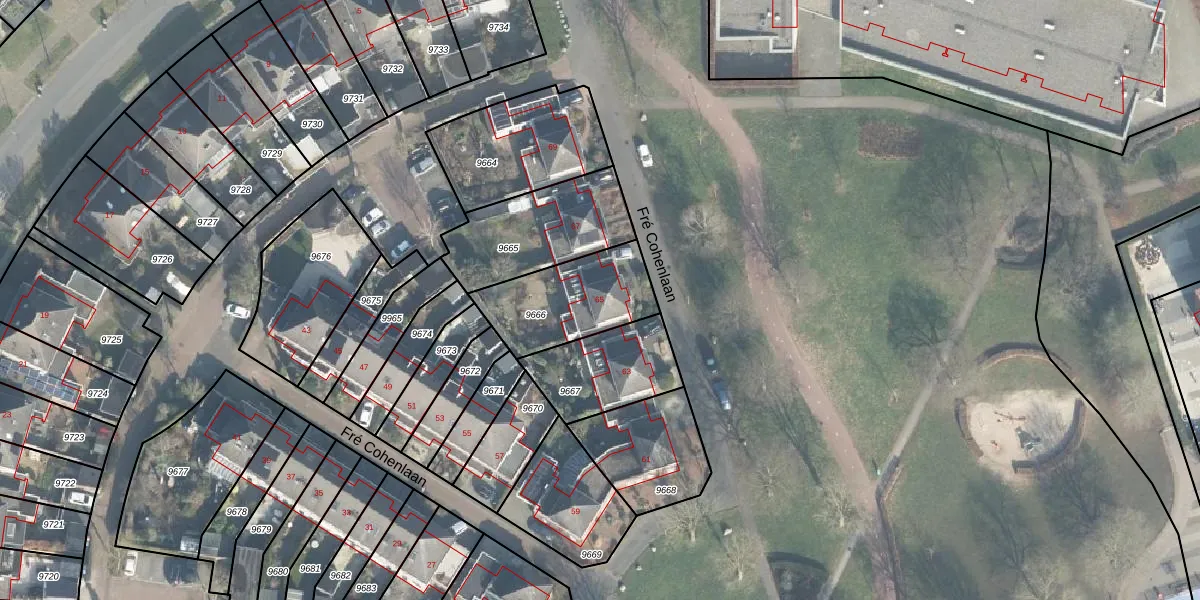 Fré Cohenlaan 65 is gelegen op kadastraal perceel LNK00N9666. Deze kadastrale aanduiding is uniek en wordt gebruikt door het Kadaster om eigendomsrechten en andere zakelijke rechten vast te leggen. Het perceel maakt onderdeel uit van de kadastrale gemeente Lonneker.
