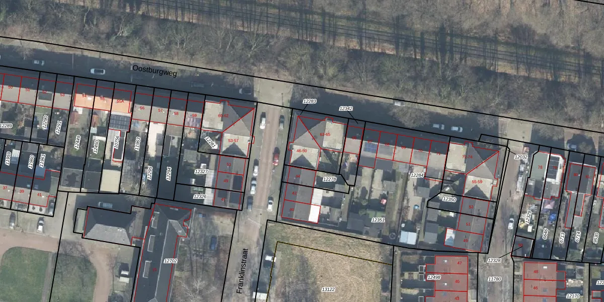 Het perceel waarop Franklinstraat 50 staat heeft een oppervlakte van 353 m². Dit is een groot perceel. De perceeloppervlakte wordt geregistreerd door het Kadaster. Gedetailleerde informatie over de maten van dit perceel kunt u vinden in het rapport Kadastrale kaart met maatvoering van Franklinstraat 50.