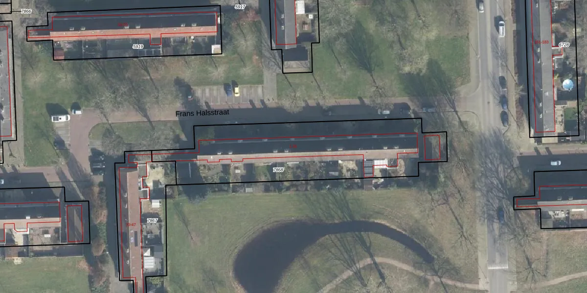 Het perceel waarop Frans Halsstraat 1 staat heeft een oppervlakte van 1714 m². Dit is een zeer groot perceel. De perceeloppervlakte wordt geregistreerd door het Kadaster. Gedetailleerde informatie over de maten van dit perceel kunt u vinden in het rapport Kadastrale kaart met maatvoering van Frans Halsstraat 1.