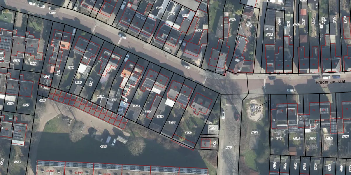 Het perceel waarop Frederikastraat 32 staat heeft een oppervlakte van 261 m². Dit is een middelgroot perceel. De perceeloppervlakte wordt geregistreerd door het Kadaster. Gedetailleerde informatie over de maten van dit perceel kunt u vinden in het rapport Kadastrale kaart met maatvoering van Frederikastraat 32.