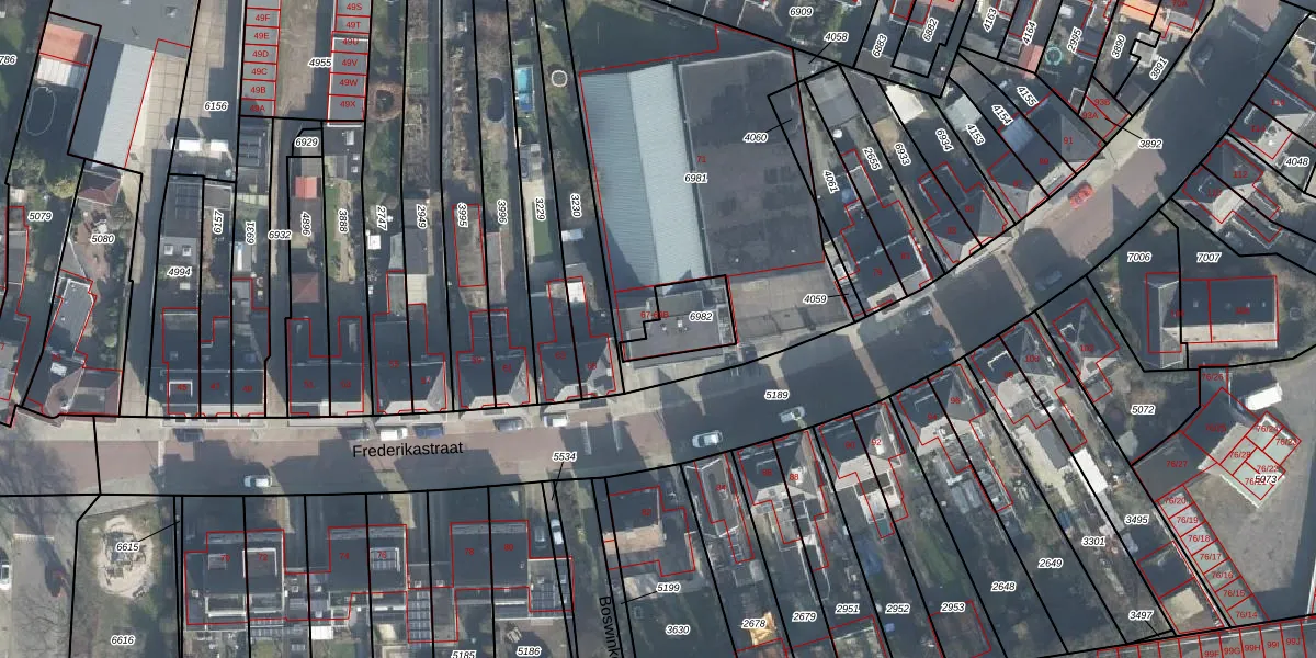 Frederikastraat 69-B is gelegen op kadastraal perceel LNK00H6982. Deze kadastrale aanduiding is uniek en wordt gebruikt door het Kadaster om eigendomsrechten en andere zakelijke rechten vast te leggen. Het perceel maakt onderdeel uit van de kadastrale gemeente Lonneker.