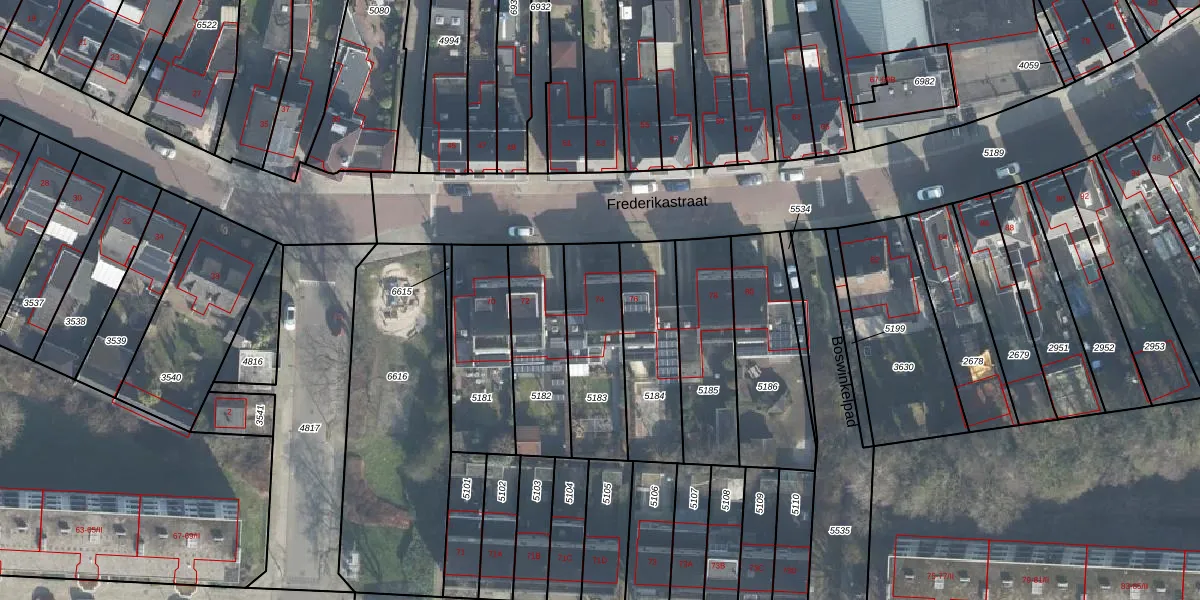 Gebruik de zoekbalk of klik op een perceel voor informatie over de adressen binnen dit perceel.