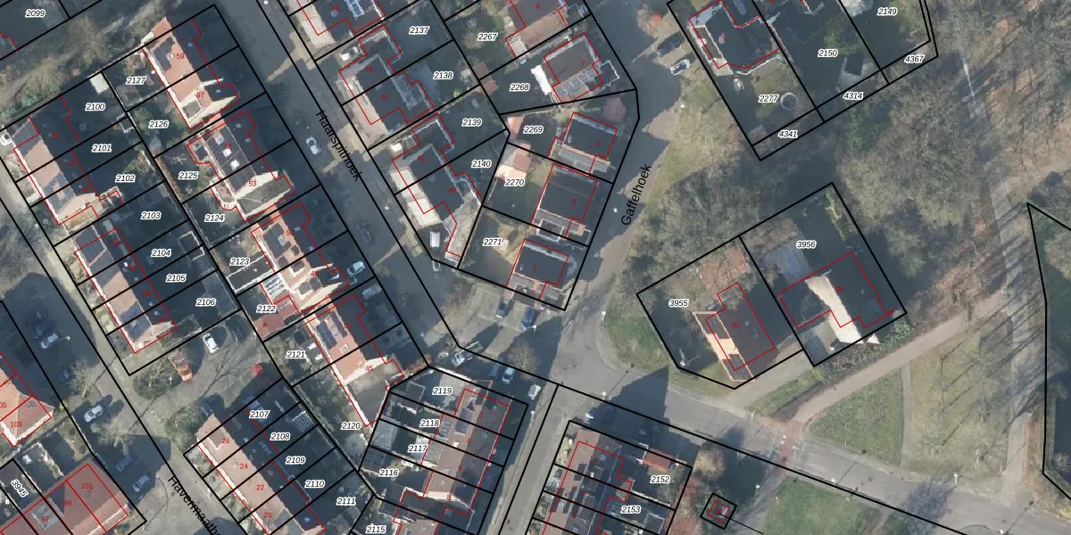 Het perceel waarop Gaffelhoek 1 staat heeft een oppervlakte van 272 m². Dit is een middelgroot perceel. De perceeloppervlakte wordt geregistreerd door het Kadaster. Gedetailleerde informatie over de maten van dit perceel kunt u vinden in het rapport Kadastrale kaart met maatvoering van Gaffelhoek 1.