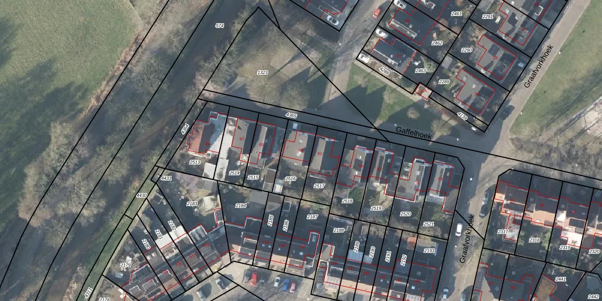Gaffelhoek 63 is gelegen op kadastraal perceel LNK00U2516. Deze kadastrale aanduiding is uniek en wordt gebruikt door het Kadaster om eigendomsrechten en andere zakelijke rechten vast te leggen. Het perceel maakt onderdeel uit van de kadastrale gemeente Lonneker.