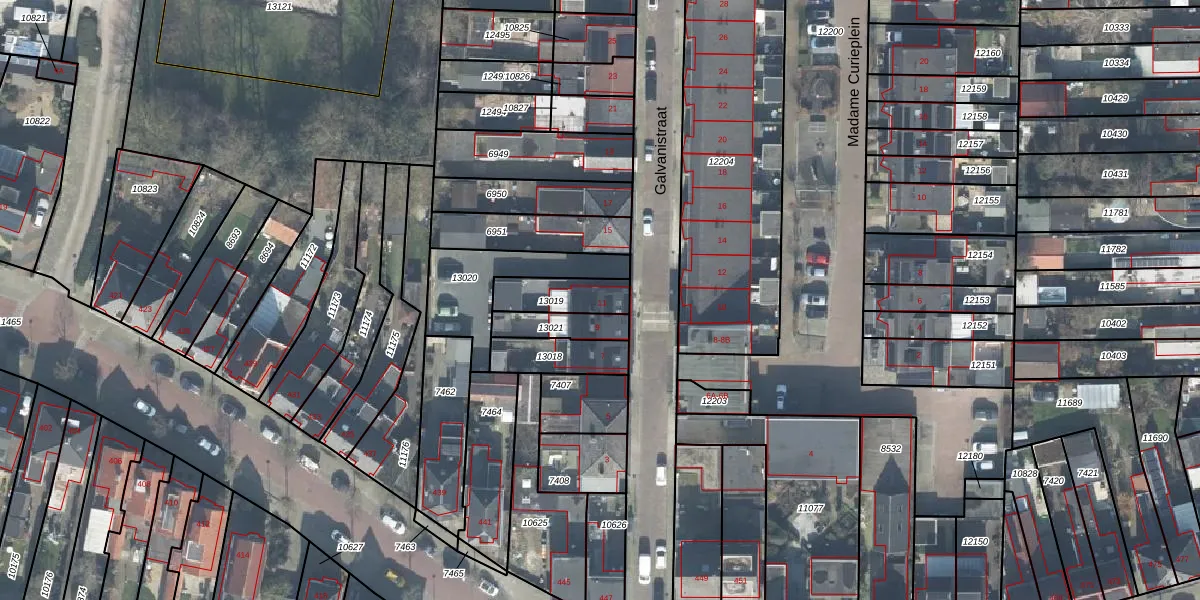 Gebruik de zoekbalk of klik op een perceel voor informatie over de adressen binnen dit perceel.