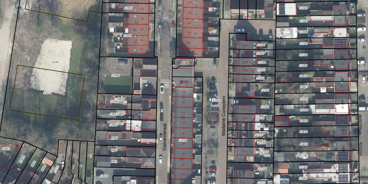 Het perceel waarop Galvanistraat 28 staat heeft een oppervlakte van 1115 m². Dit is een zeer groot perceel. De perceeloppervlakte wordt geregistreerd door het Kadaster. Gedetailleerde informatie over de maten van dit perceel kunt u vinden in het rapport Kadastrale kaart met maatvoering van Galvanistraat 28.