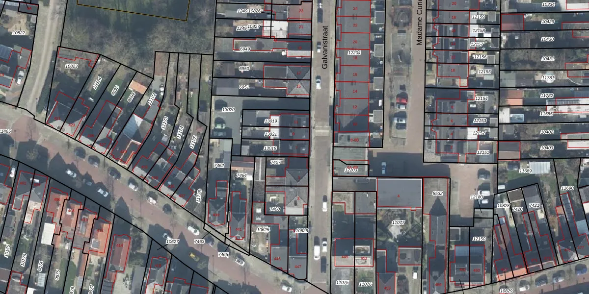 Galvanistraat 7 is gelegen op kadastraal perceel LNK00O13018. Deze kadastrale aanduiding is uniek en wordt gebruikt door het Kadaster om eigendomsrechten en andere zakelijke rechten vast te leggen. Het perceel maakt onderdeel uit van de kadastrale gemeente Lonneker.