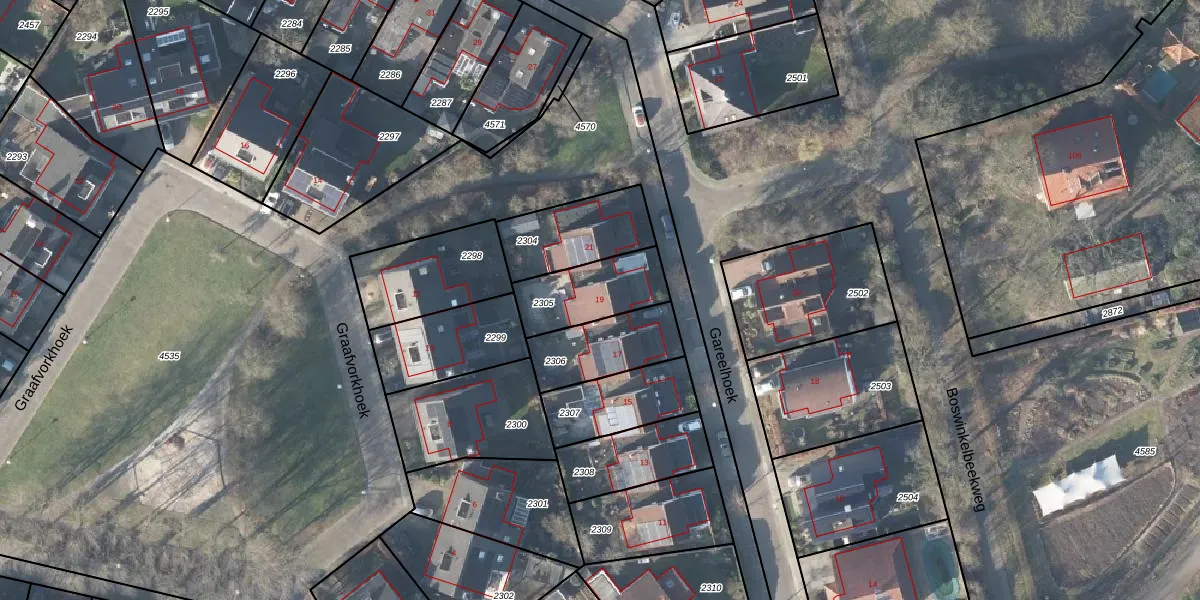 Gareelhoek 19 is gelegen op kadastraal perceel LNK00U2305. Deze kadastrale aanduiding is uniek en wordt gebruikt door het Kadaster om eigendomsrechten en andere zakelijke rechten vast te leggen. Het perceel maakt onderdeel uit van de kadastrale gemeente Lonneker.