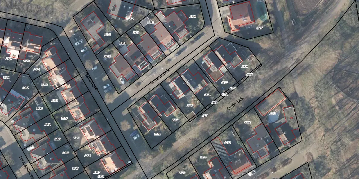 Gebruik de zoekbalk of klik op een perceel voor informatie over de adressen binnen dit perceel.