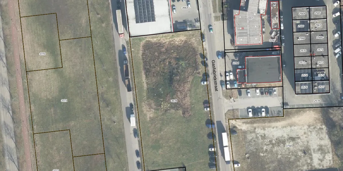 Het perceel waarop Gasfabriekstraat 18 staat heeft een oppervlakte van 3633 m². Dit is een zeer groot perceel. De perceeloppervlakte wordt geregistreerd door het Kadaster. Gedetailleerde informatie over de maten van dit perceel kunt u vinden in het rapport Kadastrale kaart met maatvoering van Gasfabriekstraat 18.