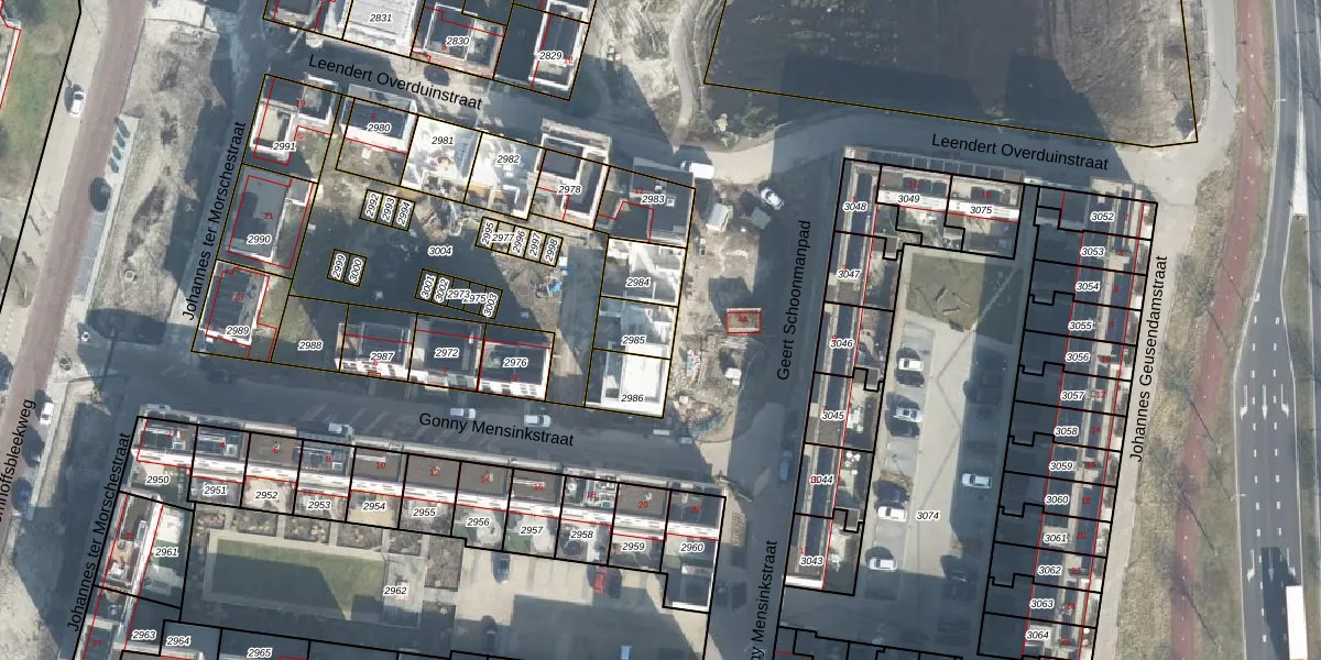 Gebruik de zoekbalk of klik op een perceel voor informatie over de adressen binnen dit perceel.