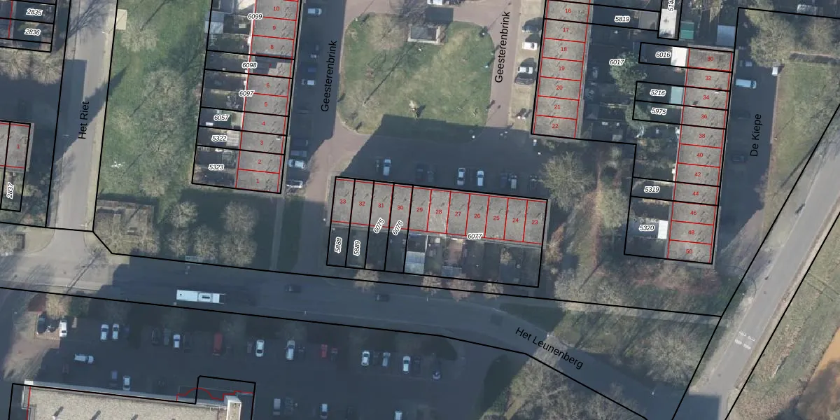 Geesterenbrink 29 is gelegen op kadastraal perceel LNK00Z6077. Deze kadastrale aanduiding is uniek en wordt gebruikt door het Kadaster om eigendomsrechten en andere zakelijke rechten vast te leggen. Het perceel maakt onderdeel uit van de kadastrale gemeente Lonneker.