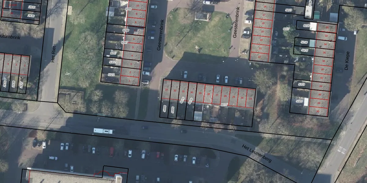 Het perceel waarop Geesterenbrink 31 staat heeft een oppervlakte van 97 m². Dit is een klein perceel. De perceeloppervlakte wordt geregistreerd door het Kadaster. Gedetailleerde informatie over de maten van dit perceel kunt u vinden in het rapport Kadastrale kaart met maatvoering van Geesterenbrink 31.