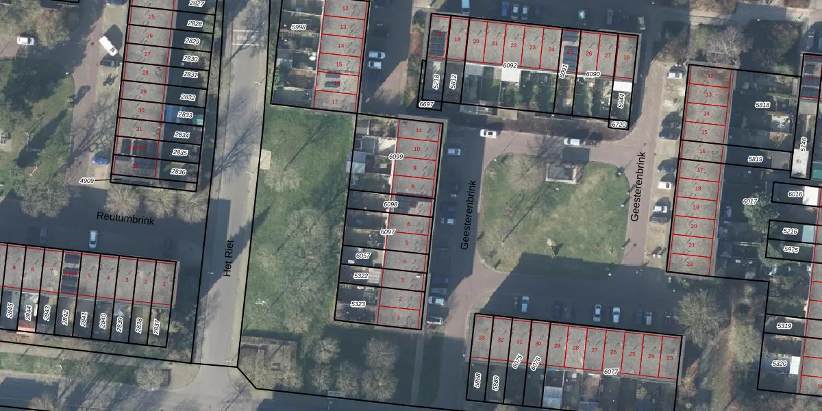 Het perceel waarop Geesterenbrink 7 staat heeft een oppervlakte van 96 m². Dit is een klein perceel. De perceeloppervlakte wordt geregistreerd door het Kadaster. Gedetailleerde informatie over de maten van dit perceel kunt u vinden in het rapport Kadastrale kaart met maatvoering van Geesterenbrink 7.