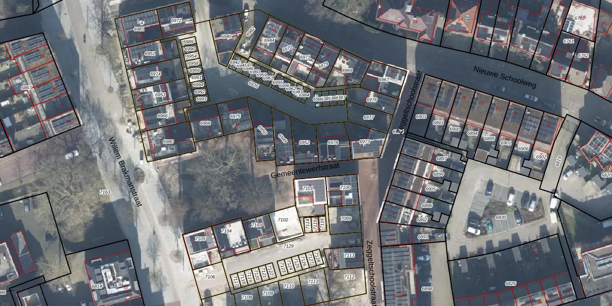 Gebruik de zoekbalk of klik op een perceel voor informatie over de adressen binnen dit perceel.