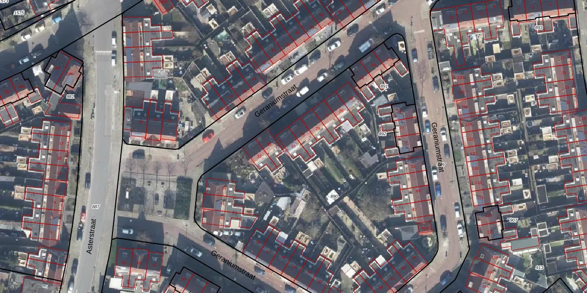Geraniumstraat 33 is gelegen op kadastraal perceel ESD00M890. Deze kadastrale aanduiding is uniek en wordt gebruikt door het Kadaster om eigendomsrechten en andere zakelijke rechten vast te leggen. Het perceel maakt onderdeel uit van de kadastrale gemeente Enschede.