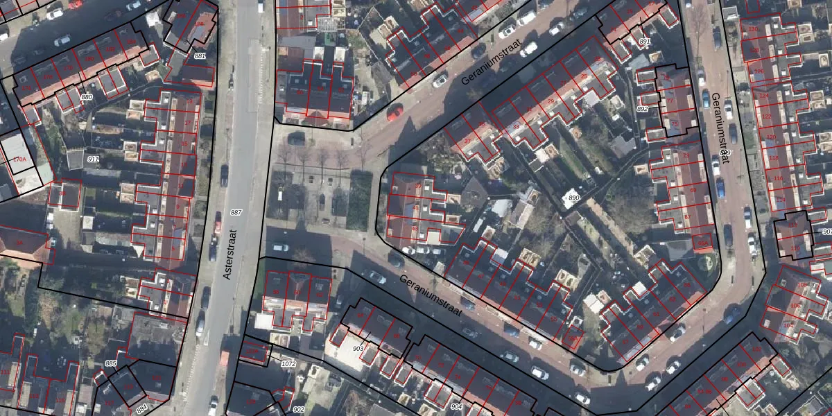Geraniumstraat 41 is gelegen op kadastraal perceel ESD00M890. Deze kadastrale aanduiding is uniek en wordt gebruikt door het Kadaster om eigendomsrechten en andere zakelijke rechten vast te leggen. Het perceel maakt onderdeel uit van de kadastrale gemeente Enschede.