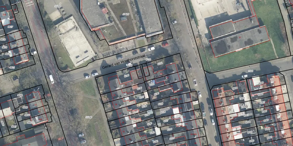 Het perceel waarop Gerard van Honthorststraat 5 staat heeft een oppervlakte van 29 m². Dit is een klein perceel. De perceeloppervlakte wordt geregistreerd door het Kadaster. Gedetailleerde informatie over de maten van dit perceel kunt u vinden in het rapport Kadastrale kaart met maatvoering van Gerard van Honthorststraat 5.