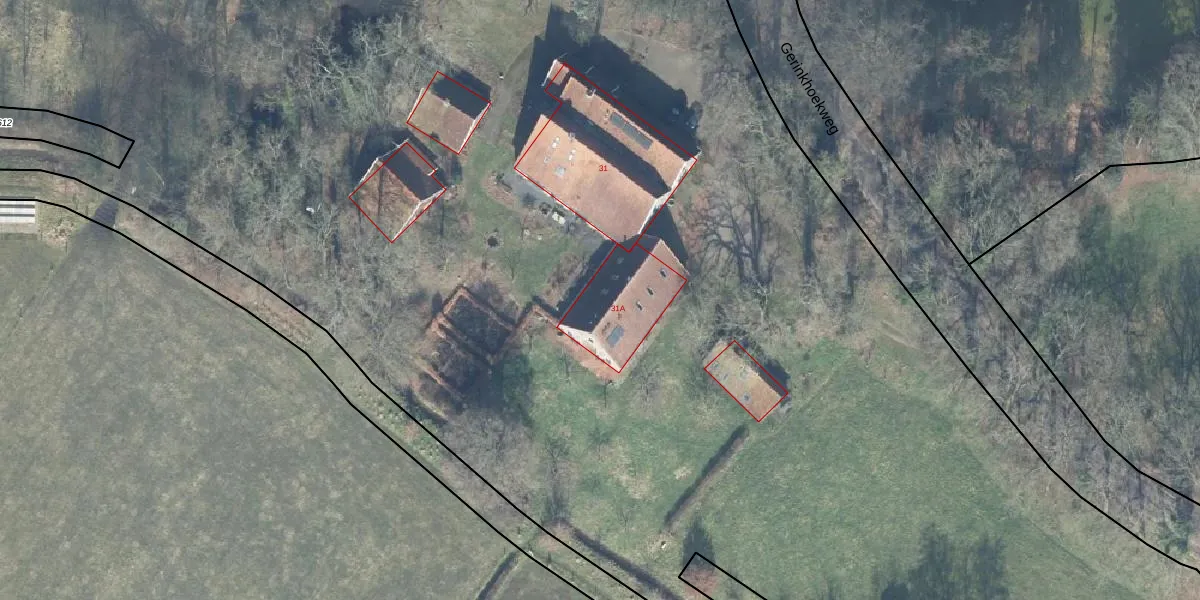 Het perceel waarop Gerinkhoekweg 31-A staat heeft een oppervlakte van 2,2 ha. Dit is een zeer groot perceel. De perceeloppervlakte wordt geregistreerd door het Kadaster. Gedetailleerde informatie over de maten van dit perceel kunt u vinden in het rapport Kadastrale kaart met maatvoering van Gerinkhoekweg 31-A.