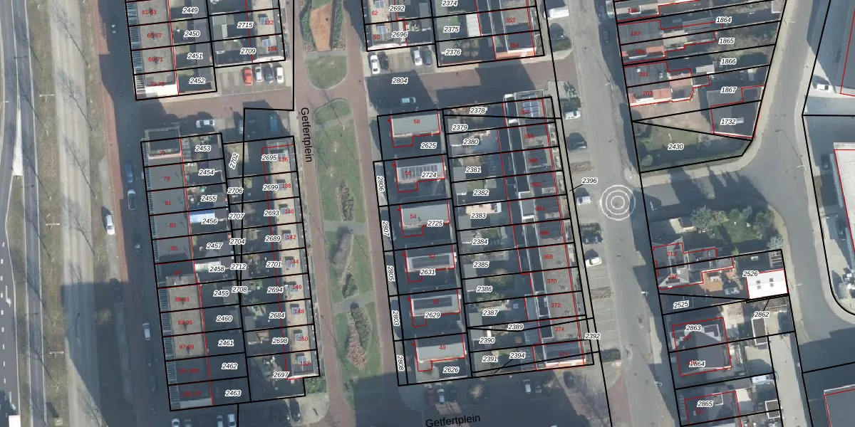 Gebruik de zoekbalk of klik op een perceel voor informatie over de adressen binnen dit perceel.