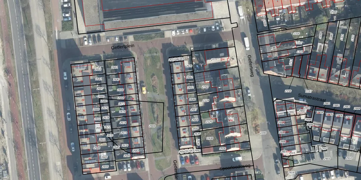 Het perceel waarop Getfertplein 88 staat heeft een oppervlakte van 77 m². Dit is een klein perceel. De perceeloppervlakte wordt geregistreerd door het Kadaster. Gedetailleerde informatie over de maten van dit perceel kunt u vinden in het rapport Kadastrale kaart met maatvoering van Getfertplein 88.