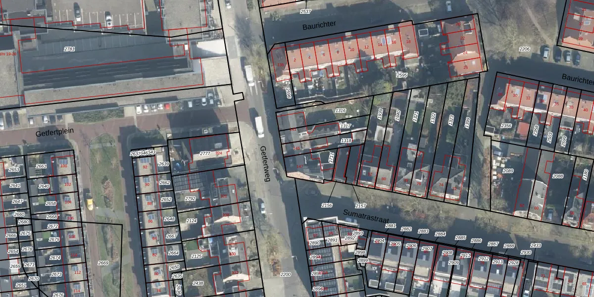 Gebruik de zoekbalk of klik op een perceel voor informatie over de adressen binnen dit perceel.