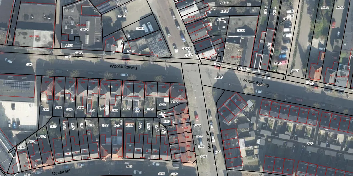 Het adres is gelegen op perceel 1443 in de sectie F en de kadastrale gemeente Enschede. De kadastrale aanduiding is aldus ESD00-F-1443. Het perceel is kleiner dan gemiddeld in Enschede. Het perceel is 115 m² groot, terwijl het gemiddelde ligt op 548,22 m². De grootste perceeloppervlakte in de kadastrale gemeente is 10,7 ha. De kleinste oppervlakte bedraagt 0 m². Dit is het enige adres dat aanwezig is op het perceel. In de Basisregistratie Kadaster (BRK) werden de grenzen van het perceel geregistreerd op 02-10-2000.