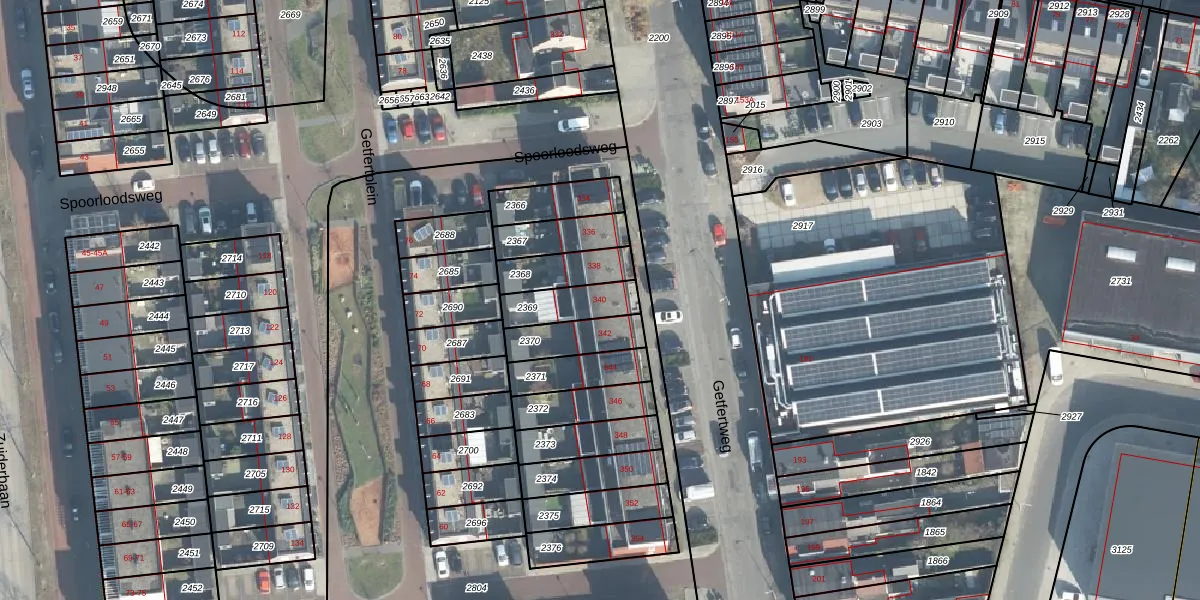 Gebruik de zoekbalk of klik op een perceel voor informatie over de adressen binnen dit perceel.