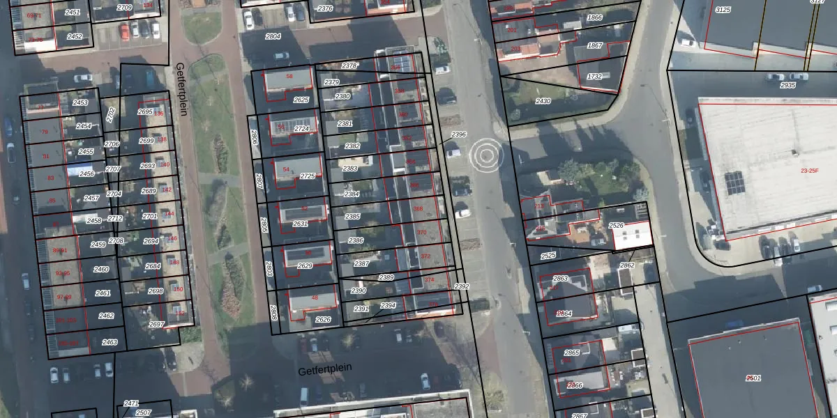Gebruik de zoekbalk of klik op een perceel voor informatie over de adressen binnen dit perceel.