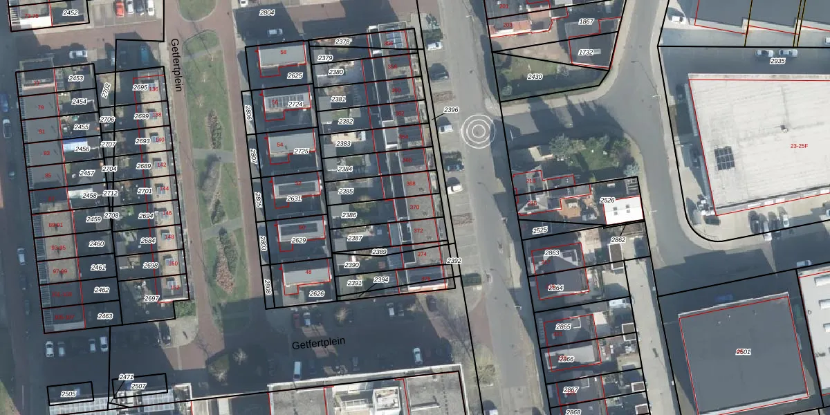 Gebruik de zoekbalk of klik op een perceel voor informatie over de adressen binnen dit perceel.