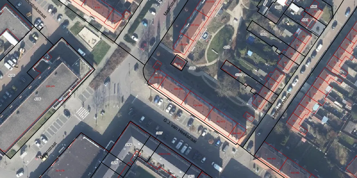 G.J. van Heekstraat 496 is gelegen op kadastraal perceel LNK00S4079. Deze kadastrale aanduiding is uniek en wordt gebruikt door het Kadaster om eigendomsrechten en andere zakelijke rechten vast te leggen. Het perceel maakt onderdeel uit van de kadastrale gemeente Lonneker.