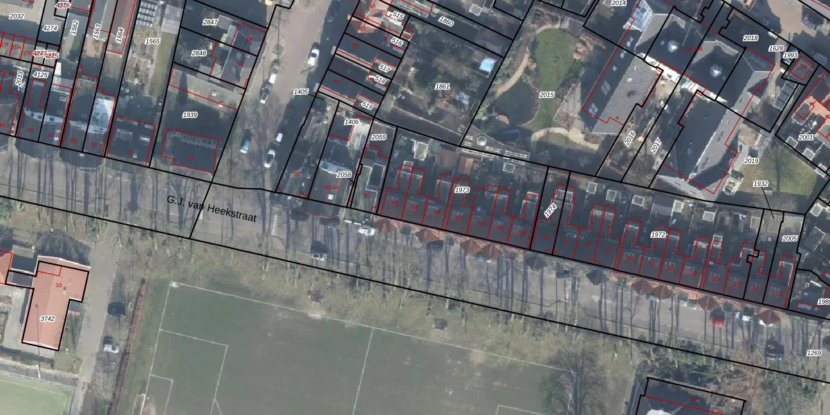 Het perceel waarop G.J. van Heekstraat 56 staat heeft een oppervlakte van 785 m². Dit is een groot perceel. De perceeloppervlakte wordt geregistreerd door het Kadaster. Gedetailleerde informatie over de maten van dit perceel kunt u vinden in het rapport Kadastrale kaart met maatvoering van G.J. van Heekstraat 56.