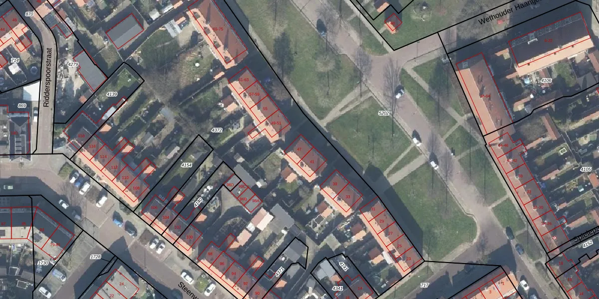 Het perceel waarop Gladiolenstraat 47 staat heeft een oppervlakte van 7792 m². Dit is een zeer groot perceel. De perceeloppervlakte wordt geregistreerd door het Kadaster. Gedetailleerde informatie over de maten van dit perceel kunt u vinden in het rapport Kadastrale kaart met maatvoering van Gladiolenstraat 47.