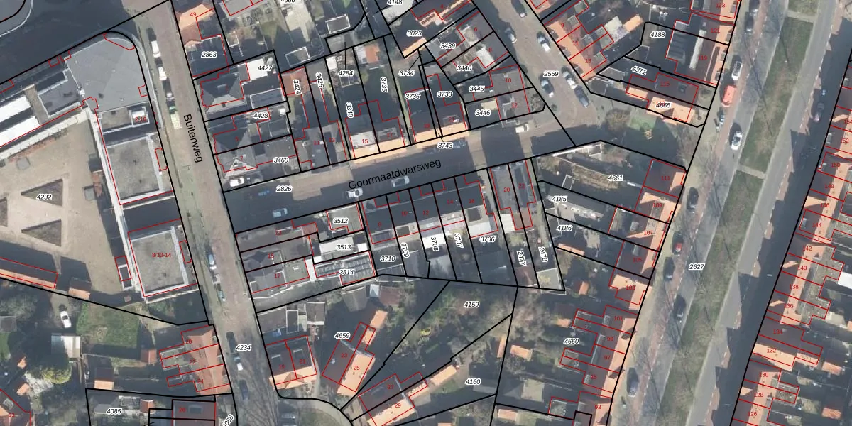 Gebruik de zoekbalk of klik op een perceel voor informatie over de adressen binnen dit perceel.