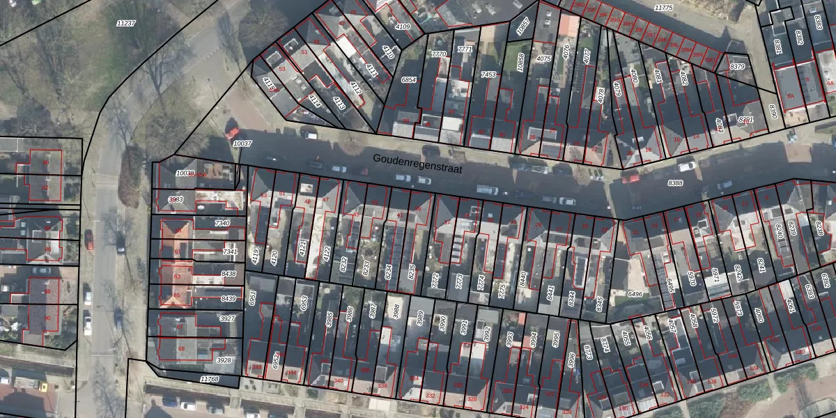Gebruik de zoekbalk of klik op een perceel voor informatie over de adressen binnen dit perceel.