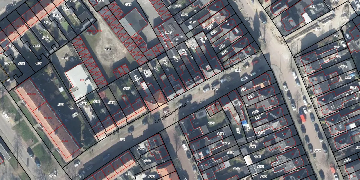 Gebruik de zoekbalk of klik op een perceel voor informatie over de adressen binnen dit perceel.