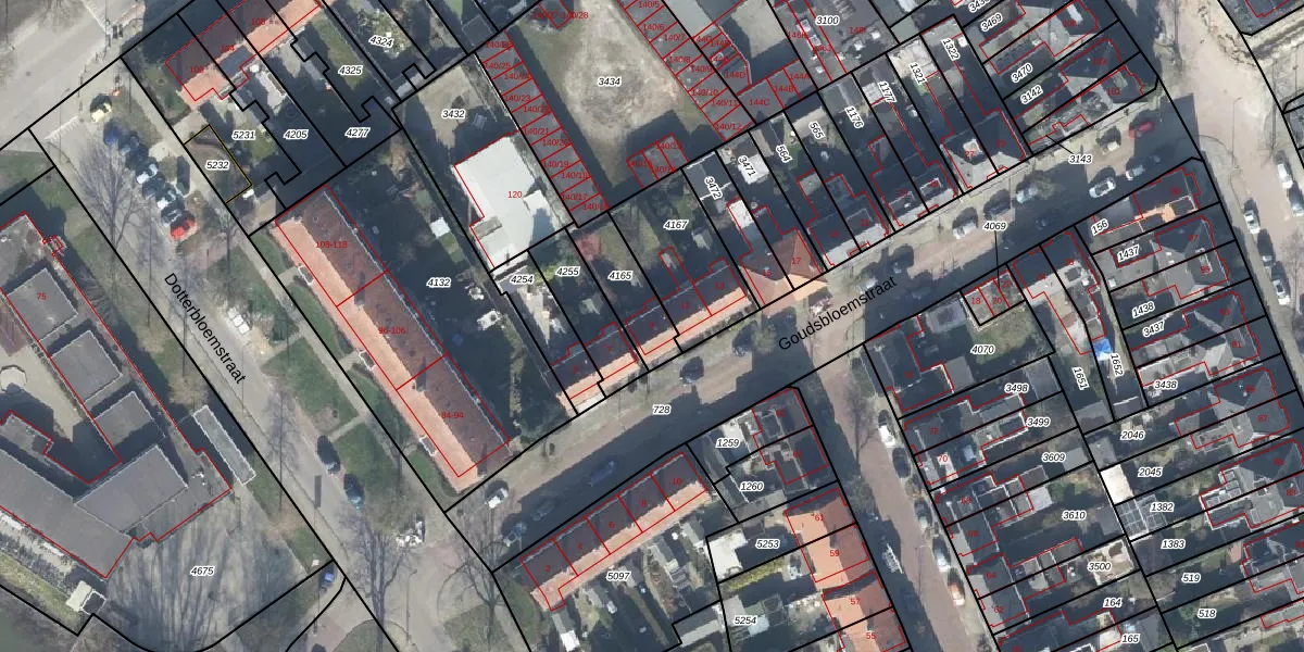 Het perceel waarop Goudsbloemstraat 9 staat heeft een oppervlakte van 169 m². Dit is een middelgroot perceel. De perceeloppervlakte wordt geregistreerd door het Kadaster. Gedetailleerde informatie over de maten van dit perceel kunt u vinden in het rapport Kadastrale kaart met maatvoering van Goudsbloemstraat 9.