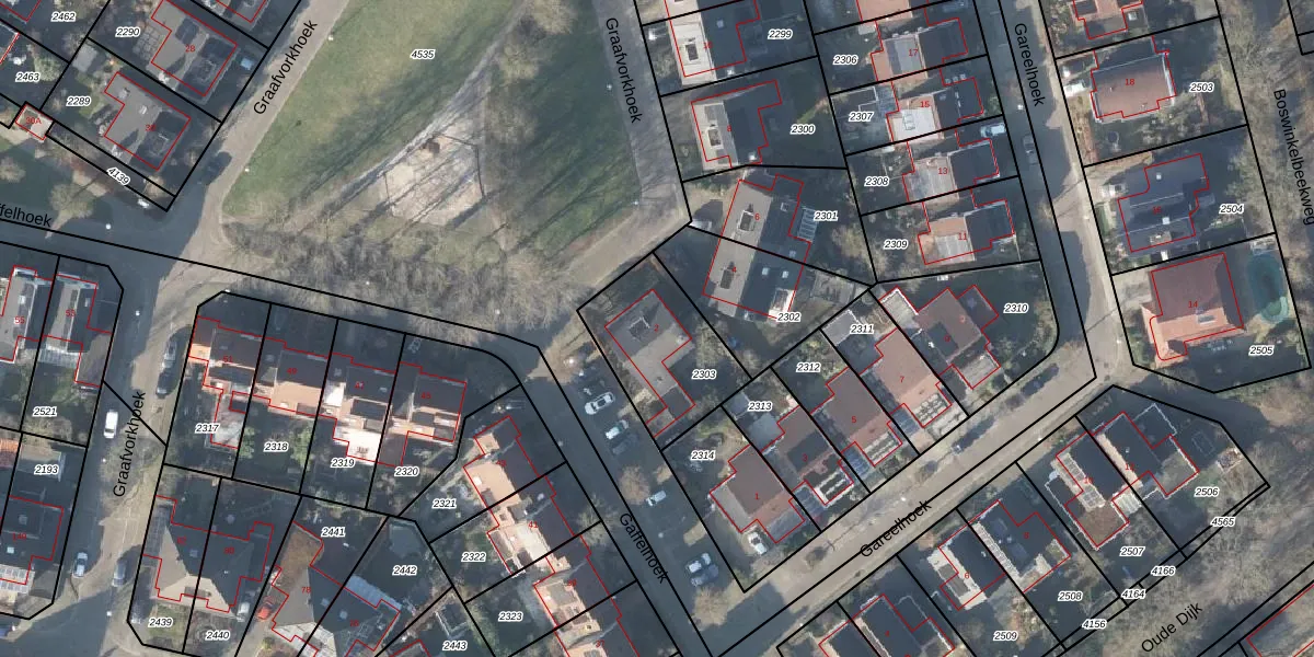 Het perceel waarop Graafvorkhoek 2 staat heeft een oppervlakte van 399 m². Dit is een groot perceel. De perceeloppervlakte wordt geregistreerd door het Kadaster. Gedetailleerde informatie over de maten van dit perceel kunt u vinden in het rapport Kadastrale kaart met maatvoering van Graafvorkhoek 2.