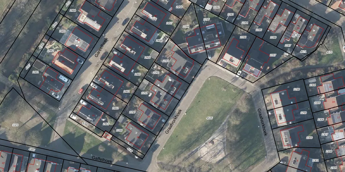 Het perceel waarop Graafvorkhoek 24 staat heeft een oppervlakte van 273 m². Dit is een middelgroot perceel. De perceeloppervlakte wordt geregistreerd door het Kadaster. Gedetailleerde informatie over de maten van dit perceel kunt u vinden in het rapport Kadastrale kaart met maatvoering van Graafvorkhoek 24.