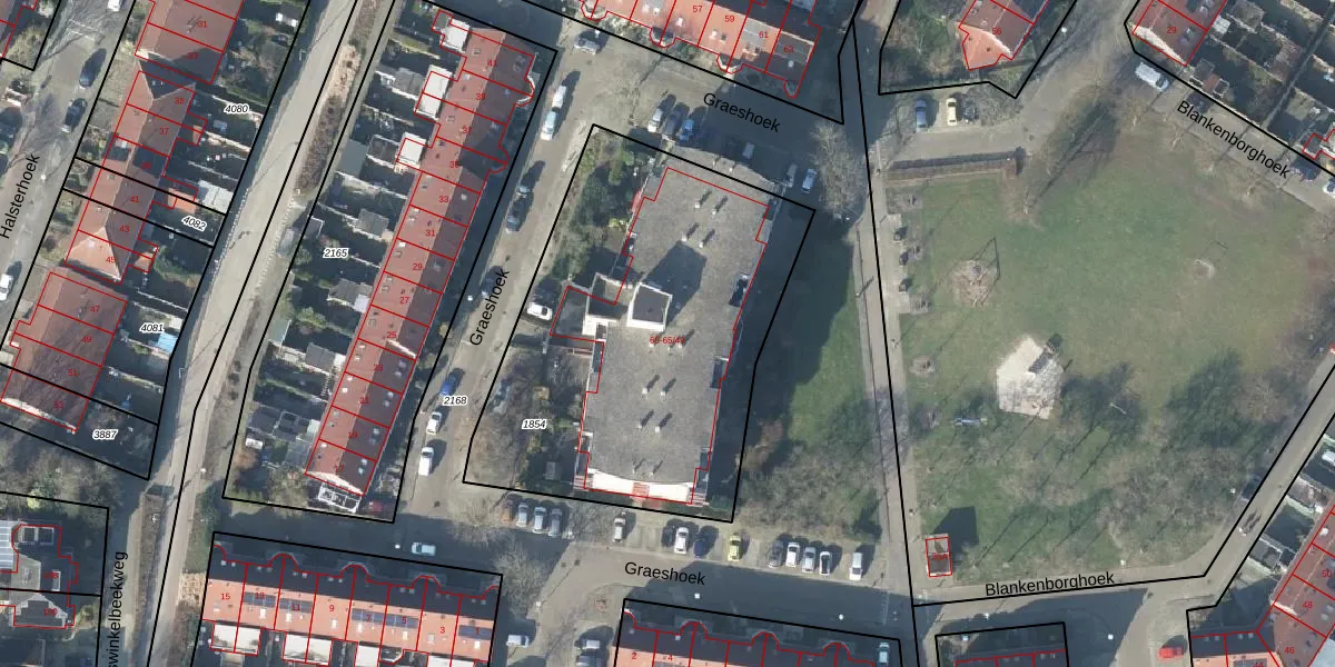 Het perceel waarop Graeshoek 65-16 staat heeft een oppervlakte van 1959 m². Dit is een zeer groot perceel. De perceeloppervlakte wordt geregistreerd door het Kadaster. Gedetailleerde informatie over de maten van dit perceel kunt u vinden in het rapport Kadastrale kaart met maatvoering van Graeshoek 65-16.