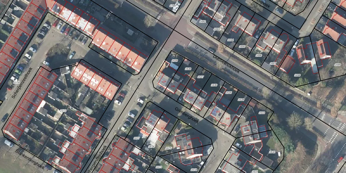 Het perceel waarop Grimberghoek 108 staat heeft een oppervlakte van 218 m². Dit is een middelgroot perceel. De perceeloppervlakte wordt geregistreerd door het Kadaster. Gedetailleerde informatie over de maten van dit perceel kunt u vinden in het rapport Kadastrale kaart met maatvoering van Grimberghoek 108.